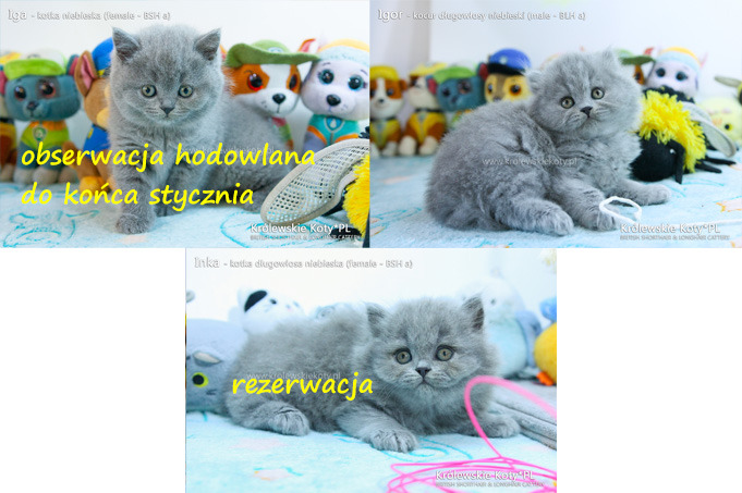 22.09.2025 - Miot I2 - przywitaliśmy miot cudownych trojaczków :). Wszystkie w kolorze niebieskim. Rodzicami zostali nasza Championka Magic Dream Królewskie Koty*PL oraz kocurek urodzony w naszej hodowli Kitten Champion Sonic Królewskie Koty*PL