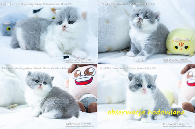 30.11.2025 - Miot K2 - przywitaliśmy miot prześlicznych czworaczków :). Wszystkie w kolorze niebieskim bikolor. Rodzicami zostali nasza Kitten Championka Sonia Królewskie Koty*PL oraz kocurek sprowadzony z Czech Champion Donatello Feline Christi*CZ